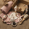Celebrate a new arrival with this adorable Newborn Bath Gift Set, perfect for baby showers, newborn photo shoots, or just a thoughtful surprise for new parents. The set features a soft, double-sided cotton blanket for ultimate comfort, along with beautifully crafted wooden milestone cards to capture baby's precious moments. A charming wooden crochet rattle adds a touch of handmade warmth, while the gentle brushes are ideal for baby’s sensitive scalp. Elegantly packaged in a gift box, this set blends practicality with timeless keepsakes—making it a heartfelt gift that parents will cherish.