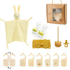 Celebrate a new arrival with this adorable Newborn Bath Gift Set, perfect for baby showers, newborn photo shoots, or just a thoughtful surprise for new parents. The set features a soft, double-sided cotton blanket for ultimate comfort, along with beautifully crafted wooden milestone cards to capture baby's precious moments. A charming wooden crochet rattle adds a touch of handmade warmth, while the gentle brushes are ideal for baby’s sensitive scalp. Elegantly packaged in a gift box, this set blends practicality with timeless keepsakes—making it a heartfelt gift that parents will cherish.